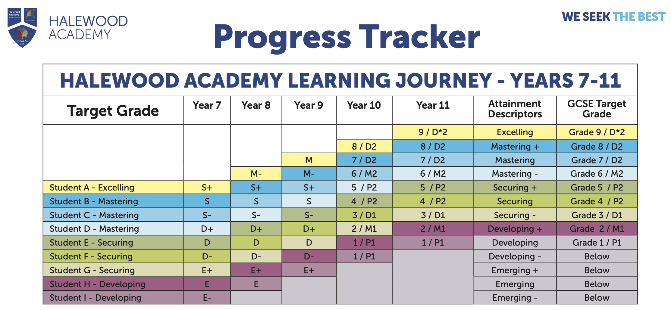 In years 7 - 9 we use prior attainment from Key Stage 2 and some practical subjects may use a robust baseline. Each student is then assigned a progress pathway that is relative to each child’s ability so we, your child and yourselves can monitor their progress. These targets are then reviewed at the end of the year to ensure they are still aspirational and appropriate.
